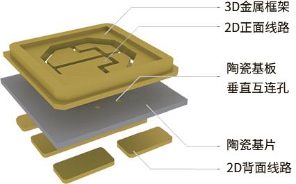 薄膜電路陶瓷封裝基板是一種通過磁控濺射薄膜金屬化與電鍍制程的技術:即根據應用需要,在高導熱的陶瓷基體上,采用薄膜金屬化及影像轉移方式制作2D金屬線路,然后采用TCV(Through Ceramic Via) 技術形成雙面布線間的垂直互連,最后采用堆疊技術獲得與陶瓷基體結合緊密的一體式3D金屬框架?;诒∧る娐饭に嚕ㄟ^磁控濺射實現陶瓷表面金屬化,通過電鍍實現銅層和金成的厚度大于10微米以上即DPC(DirectPlateCopper-直接鍍銅基板)。